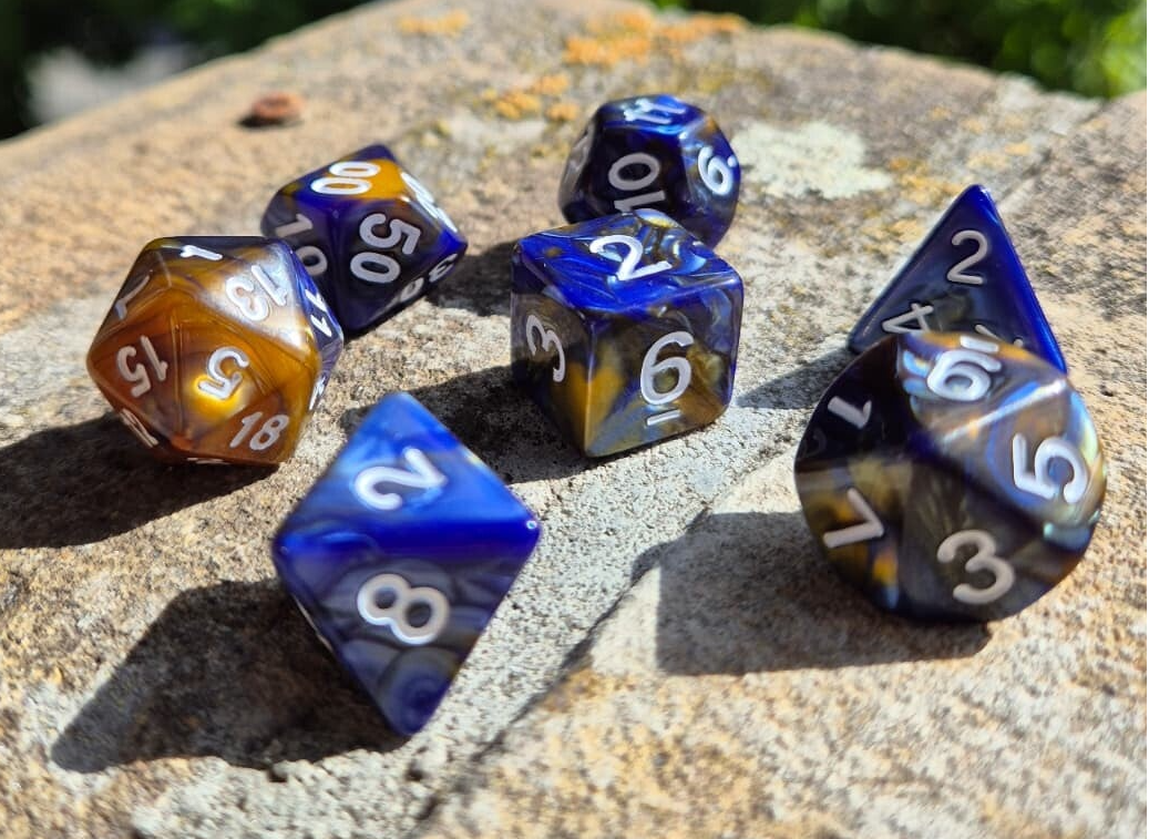 Dice set blauw goud