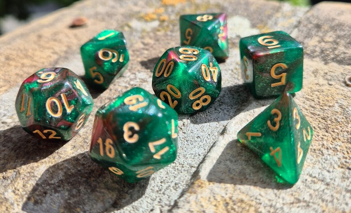 Dice set donker groen roze